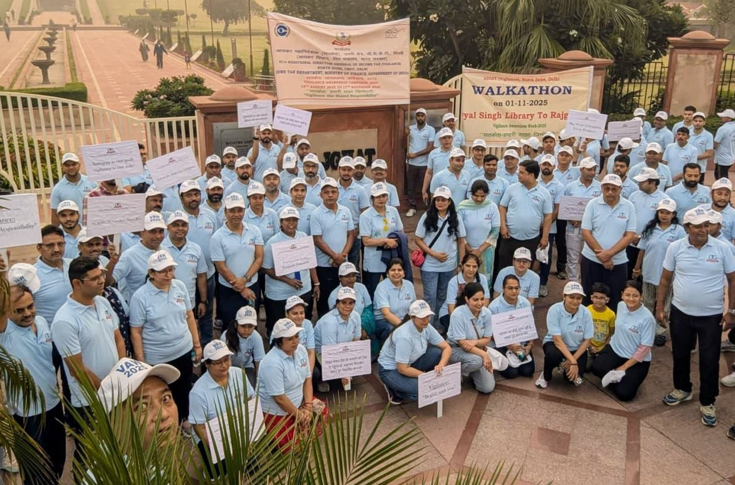 As part of the concluding activities of Vigilance Awareness Week 2025, a Walkathon was organised jointly by the Directorate of Income Tax (Vigilance), North Zone, and the office of the Pr. CCIT, Delhi, on 1st November 2025. Starting from ITO and culminating at Rajghat, over 100 officers of the Income Tax Department, Delhi, marched with spirited resolve, championing the call for a “Corruption Free India.” The event concluded with homage to Mahatma Gandhi and a community breakfast, reaffirming the Department’s collective commitment to integrity and transparency in public service.