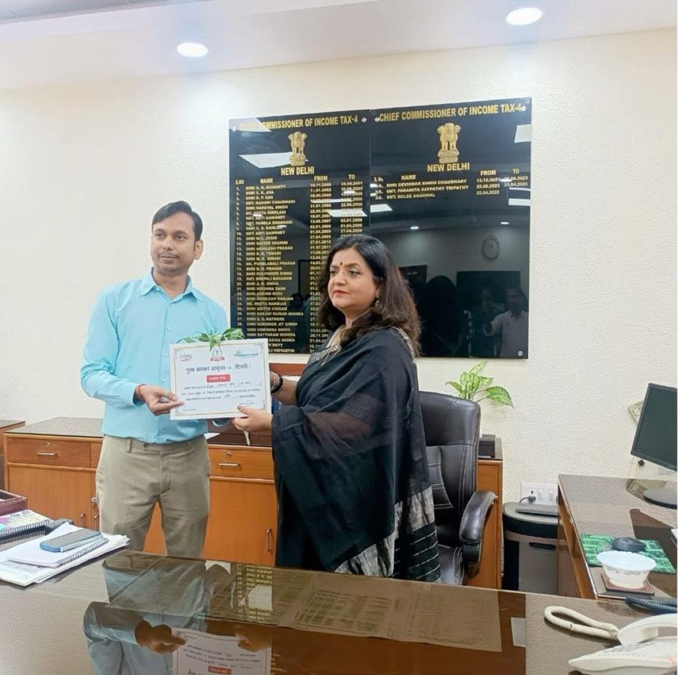 Swachhta Hi Seva Mission के अंतर्गत स्वच्छता एवं सृजनात्मकता को बढ़ावा देने के लिए हिंदी निबंध लेखन एवं चित्रकला प्रतियोगिता का आयोजन किया गया। प्रतियोगिता के विजेताओं को मा. श्रीमती रोली अग्रवाल, मुख्य आयकर आयुक्त, दिल्ली-04 द्वारा पुरस्कार एवं प्रशस्ति पत्र प्रदान किए गए। साथ ही, अधिकारियों एवं कर्मचारियों ने राजस्व वन, विकास भवन में सफाई अभियान एवं श्रमदान कर स्वच्छता और पर्यावरण संरक्षण का संदेश दिया।